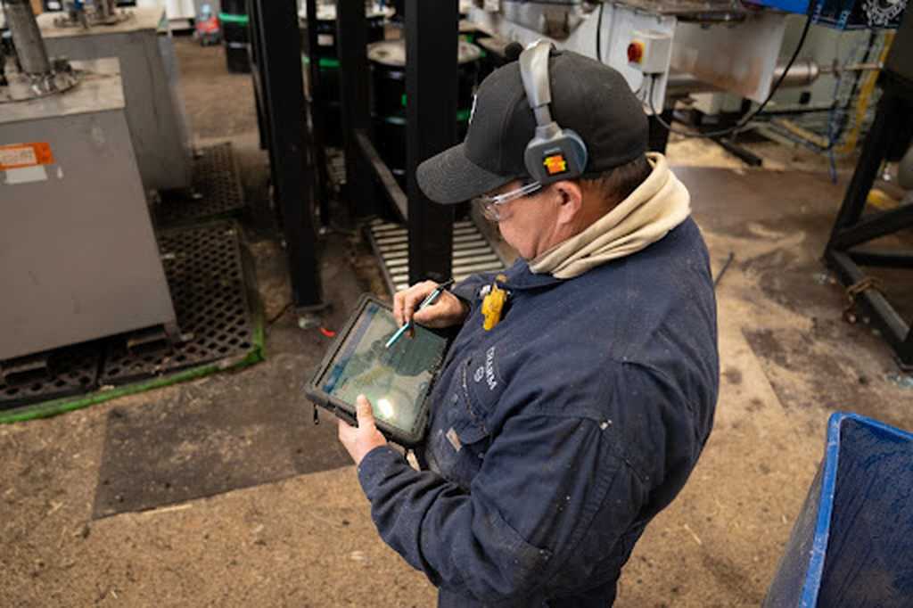 Operator performing routine machine walkdowns using Manufacturo